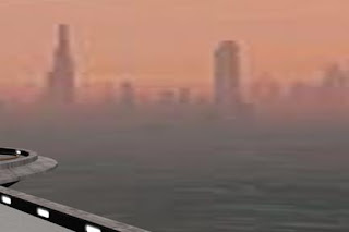 It's hard to tell in these images, but the lighting on our Jedi Temple model didn't match the lighting on the matte painting of the Coruscant cityscape. This will be more obvious in the next set of before-and-after pictures.